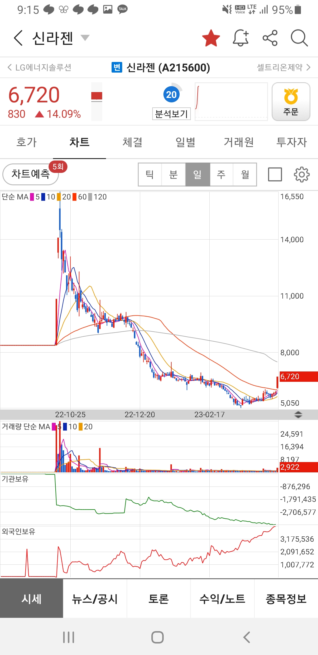 바이오주들 다 튀니까 그래도 따라가긴하는군요 XD