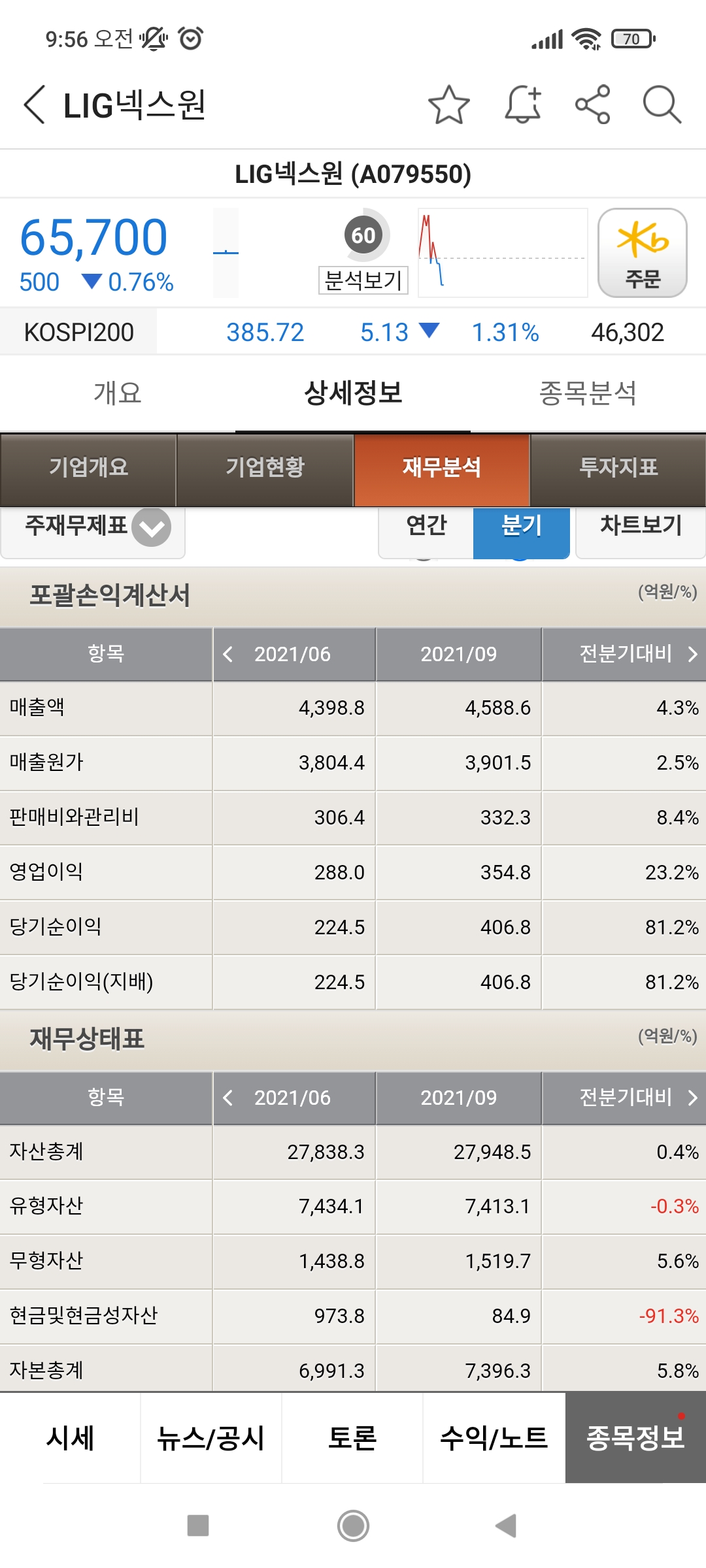 2021년 9월 전년동기 대비 연결기준 매출액은 12.2% 증가, 영업이익은 80.2% 증가, 당기순이익은 78.5% 증가.