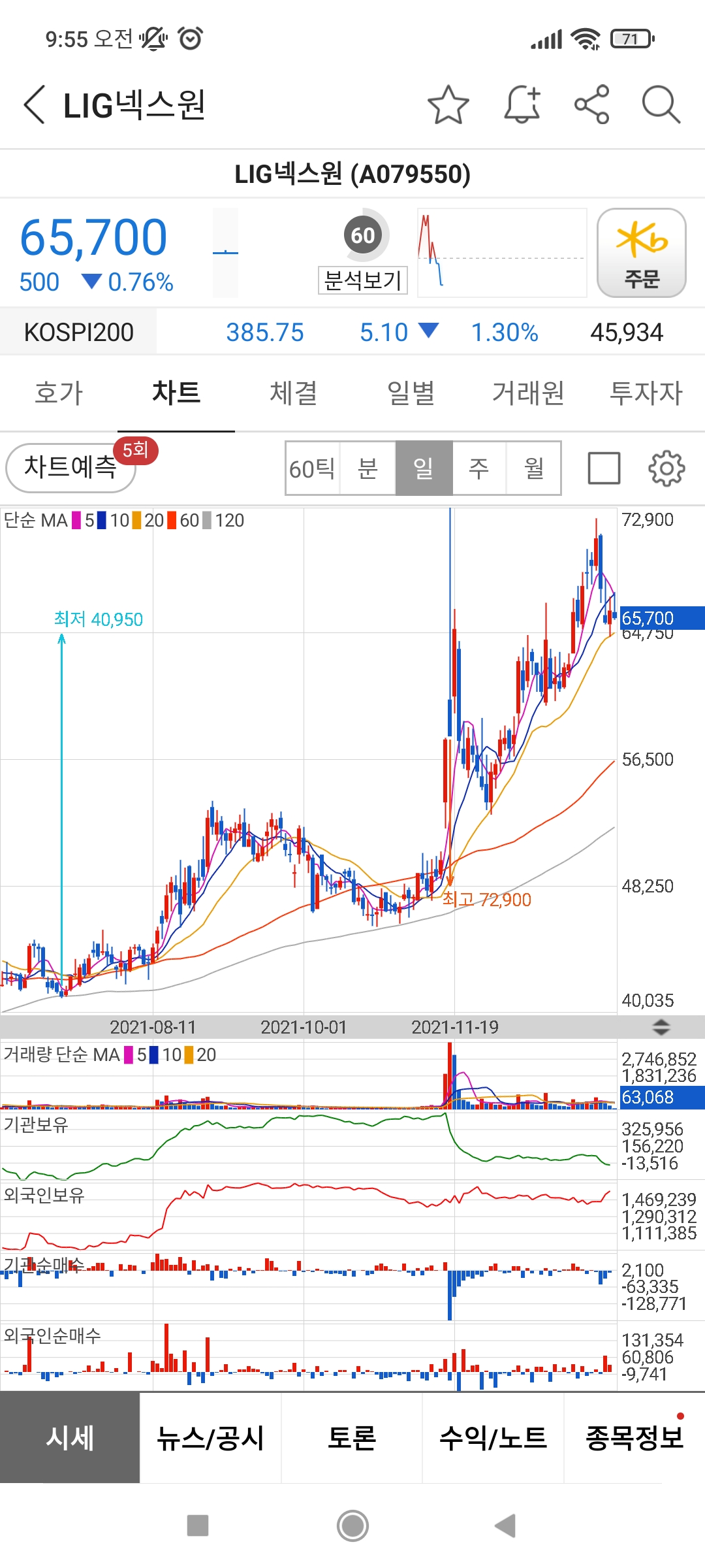 기관 외인이 대량매수 또 따라붙으면 단타가 좀 나올테고, 그렇게되면 여러주체가 또 수익실현이 많이 나올 수 있기때문에