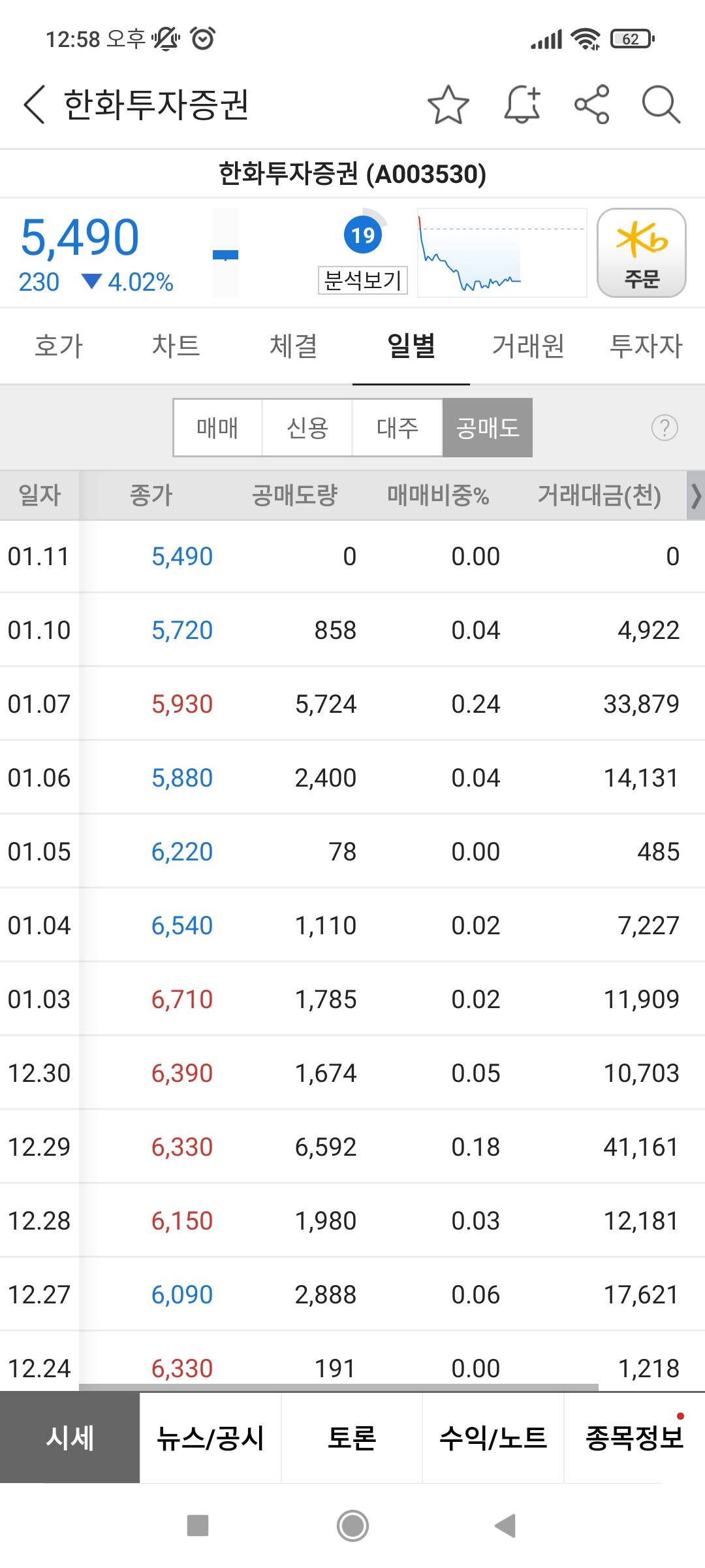 한화투자증권은 나름 금융주인데 매동이 꼬인상태라