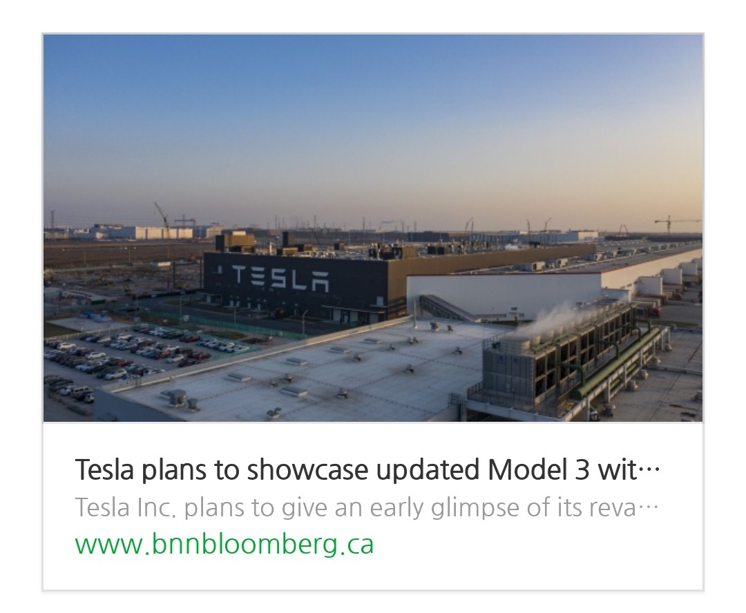 출처 https://www.bnnbloomberg.ca/tesla-plans-to-showcase-updated-model-3-with-musk-in-shanghai-1.1927147
