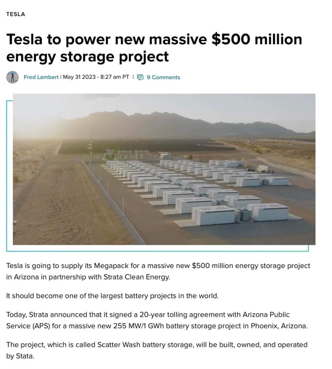 #테슬라가 애리조나에 1GWh 용량과 255MW 출력을 갖춘 #배터리 스토리지 #메가팩을 설치합니다. 5억 달러의 비용이 들었습니다.