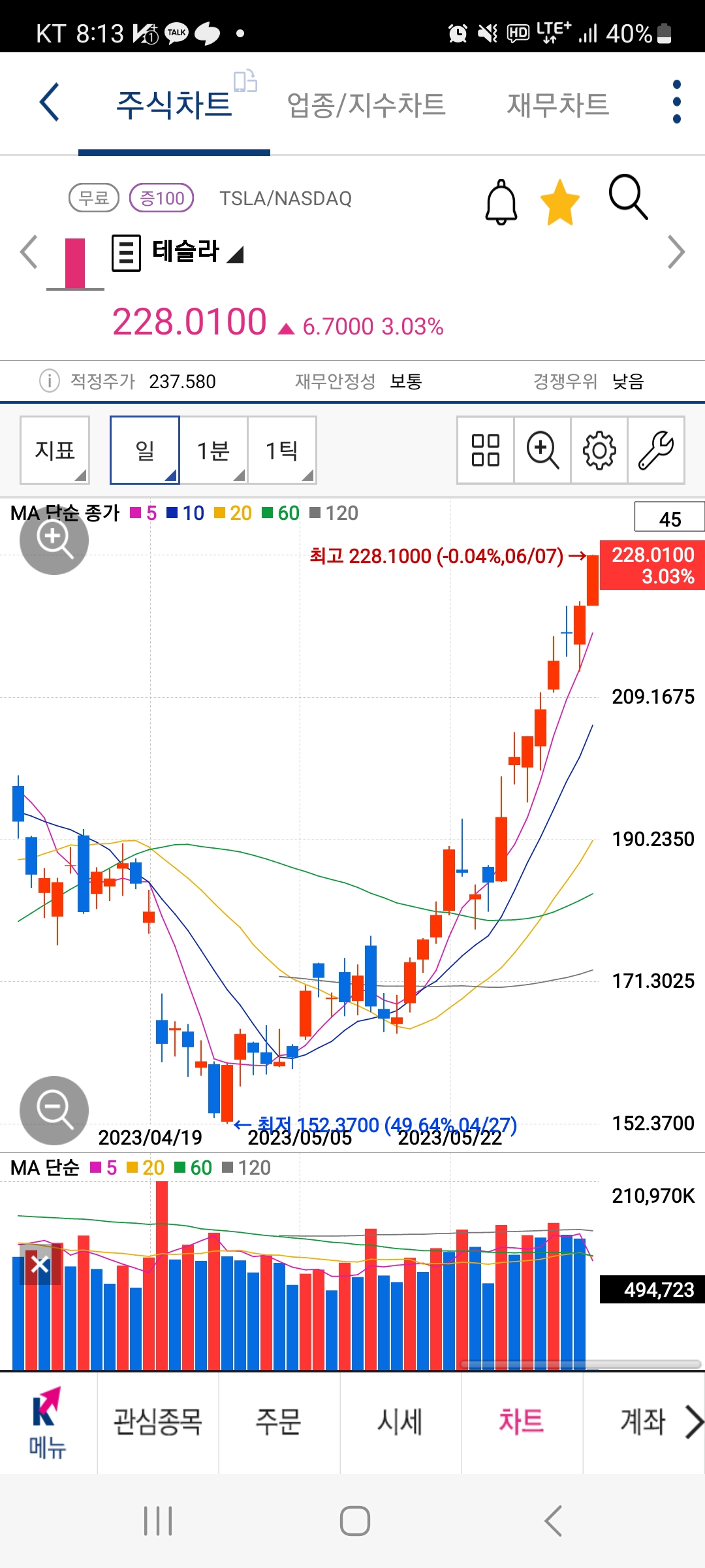 TSLA 테슬라 다시 상단 매물대 도착 (40) | 2023.06.05 |