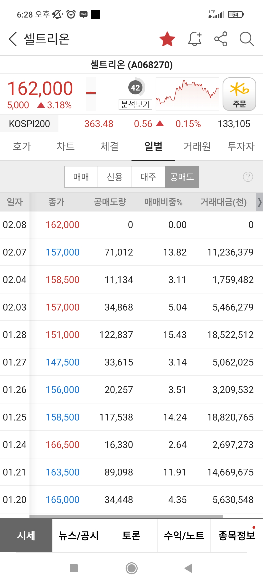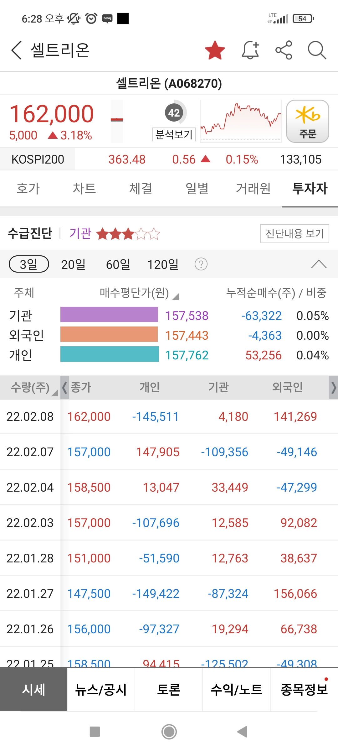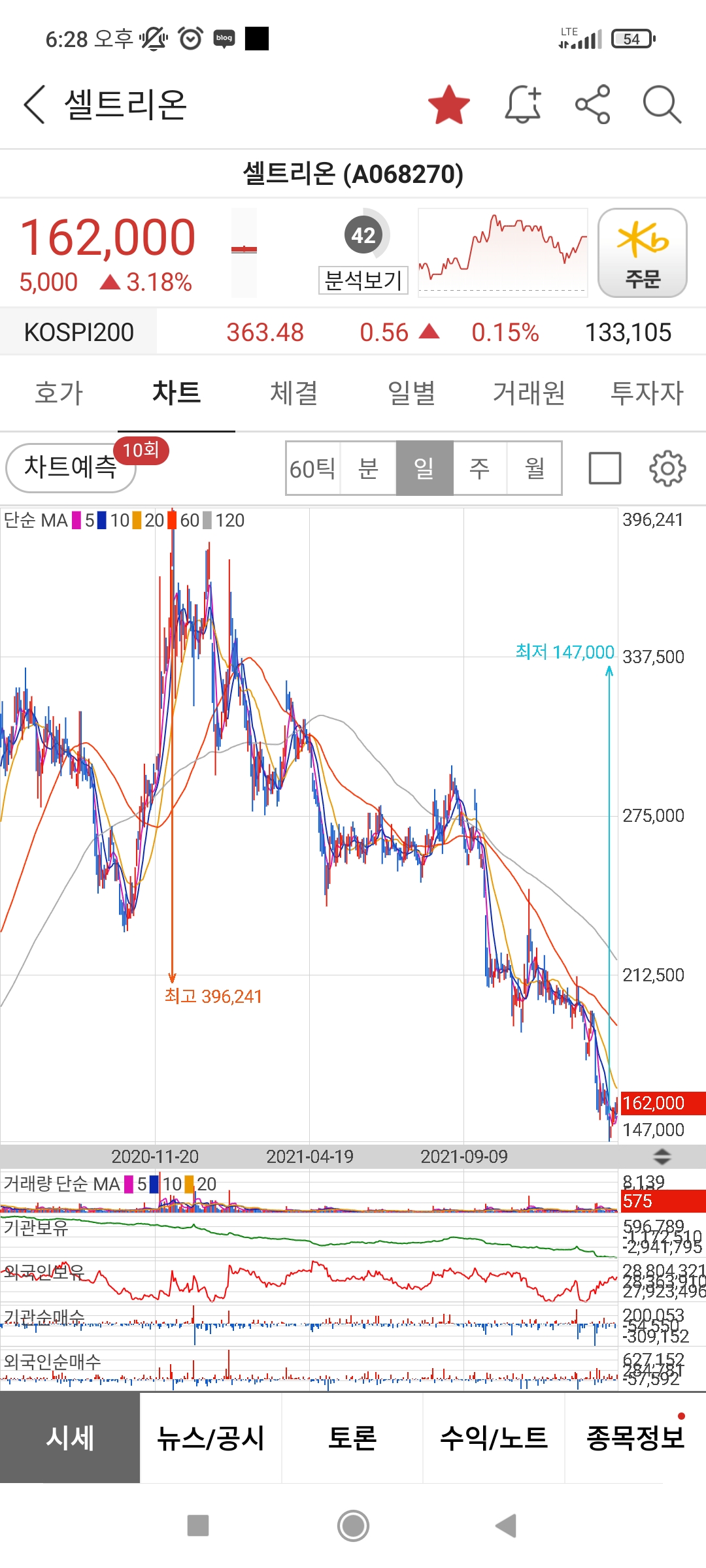 셀트리온은 개인기법 외인 기관 투자하는주체가 굉장히 많고, 투자규모도 높은편이죠
