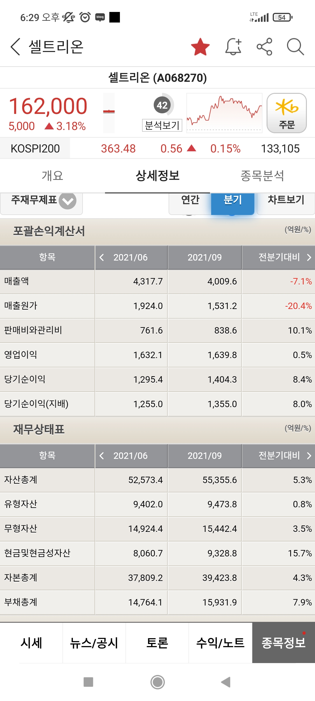 2021년 9월 전년동기 대비 연결기준 매출액은 4.5% 감소, 영업이익은 2.3% 감소, 당기순이익은 9.9% 증가.