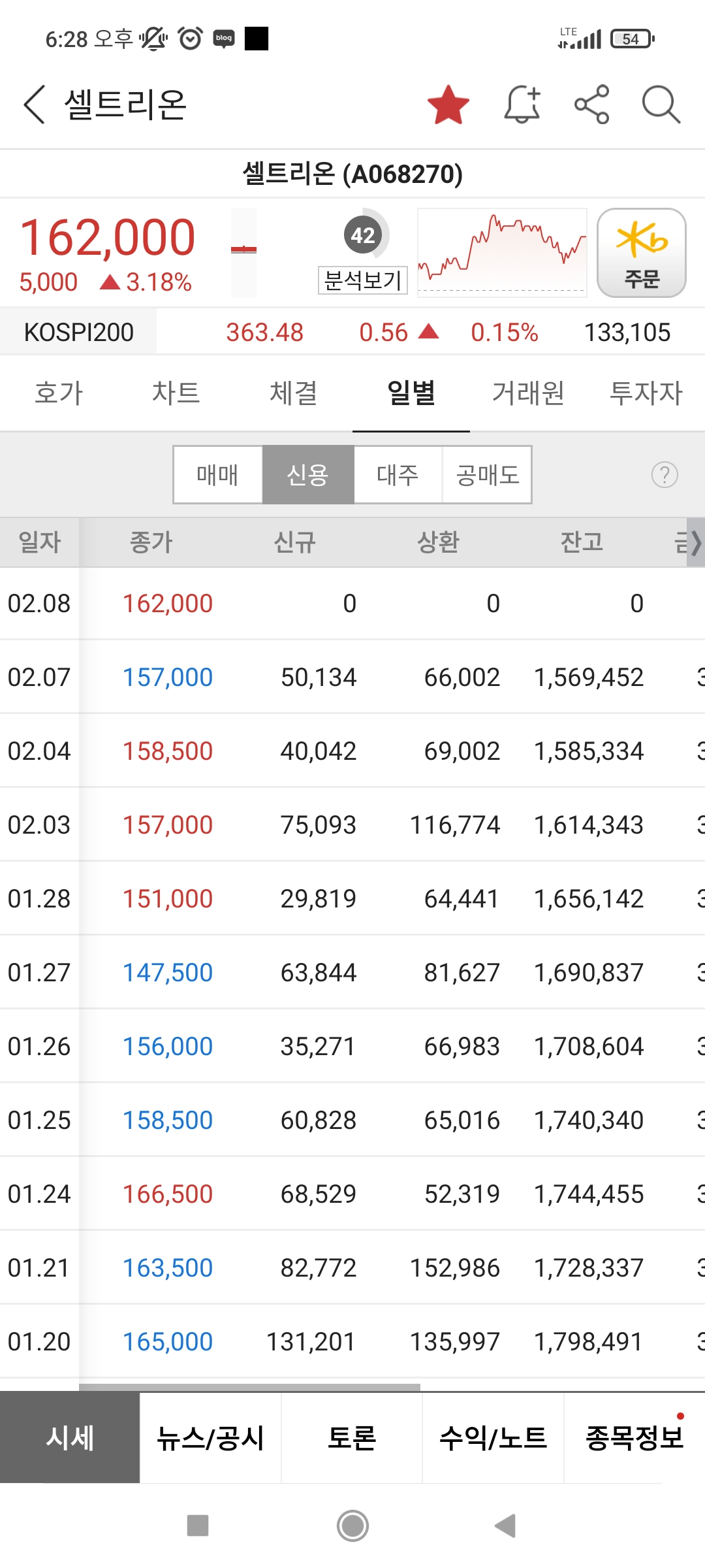 투자자들이 레버리지 이용해서 큰 수익을 올리려하고 있는 종목이라서 신용은 늘 있습니다
