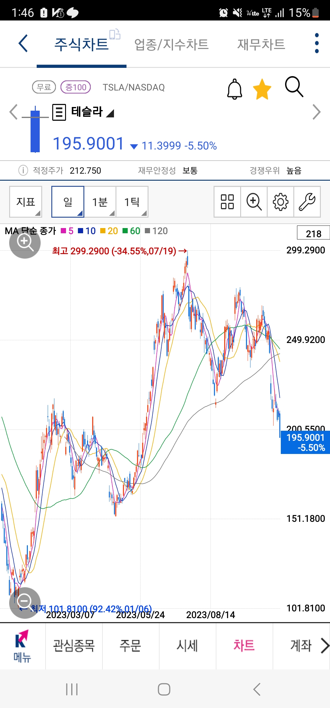 물론 내일당장 급반등해서 다시 250달러 갈지도 모르지만.....
