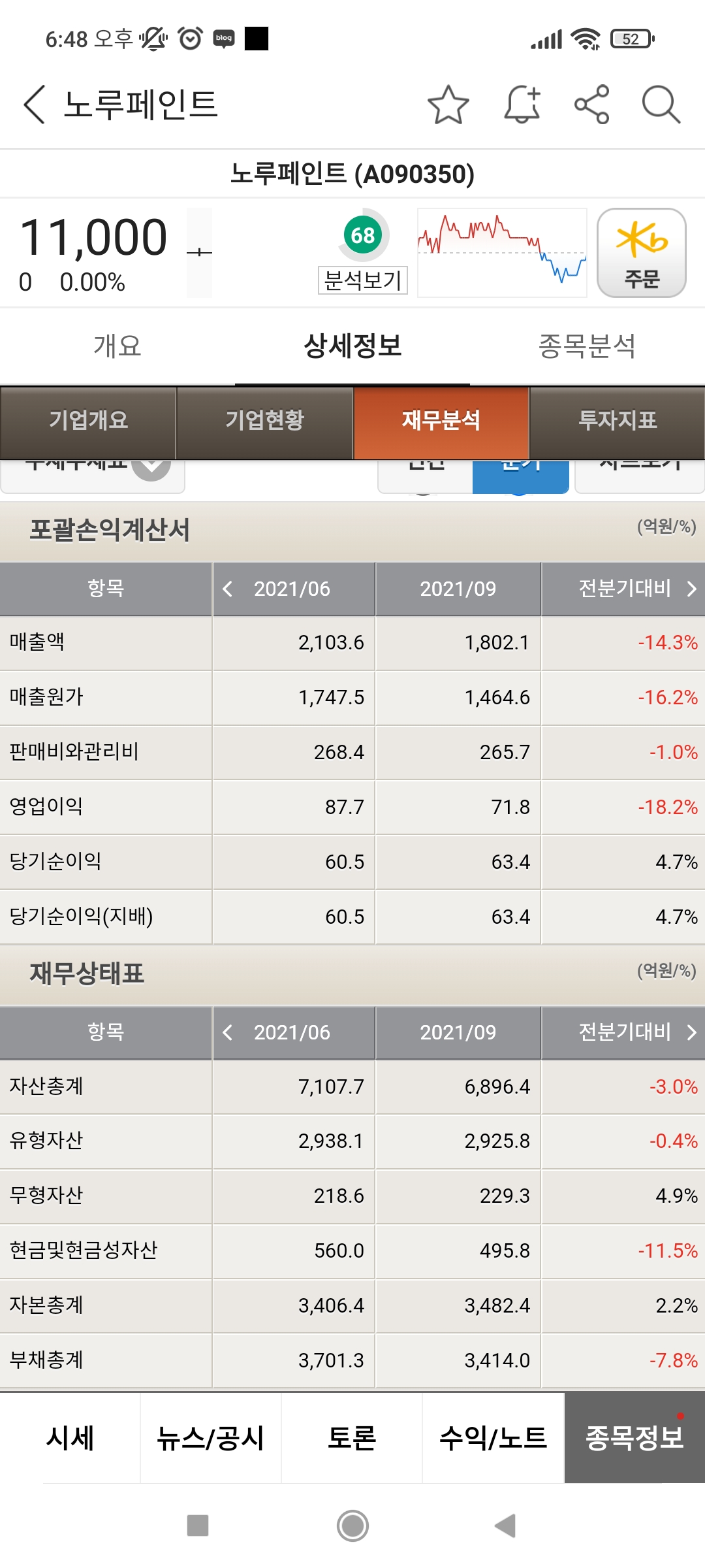 2021년 9월 전년동기 대비 연결기준 매출액은 15% 증가, 영업이익은 21.6% 감소, 당기순이익은 16.2% 감소.