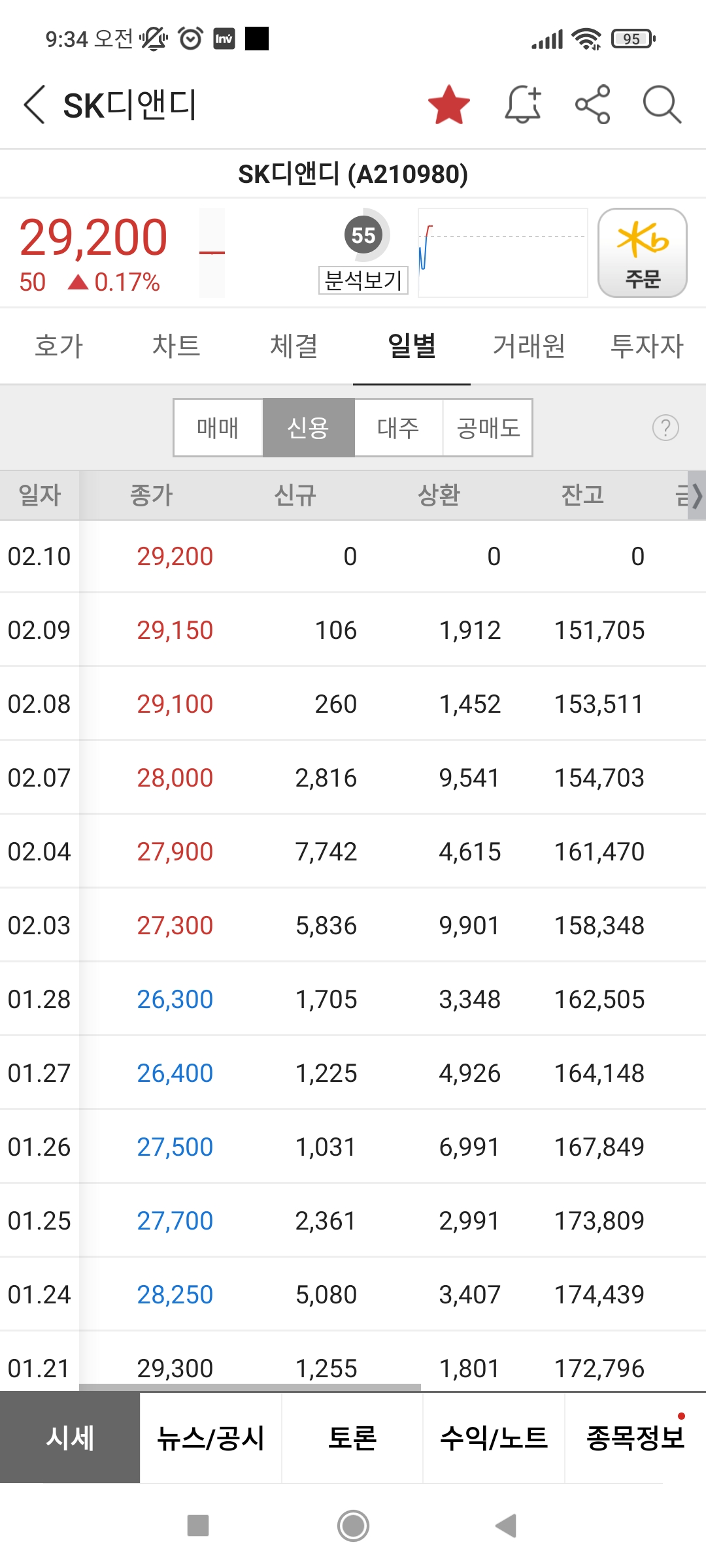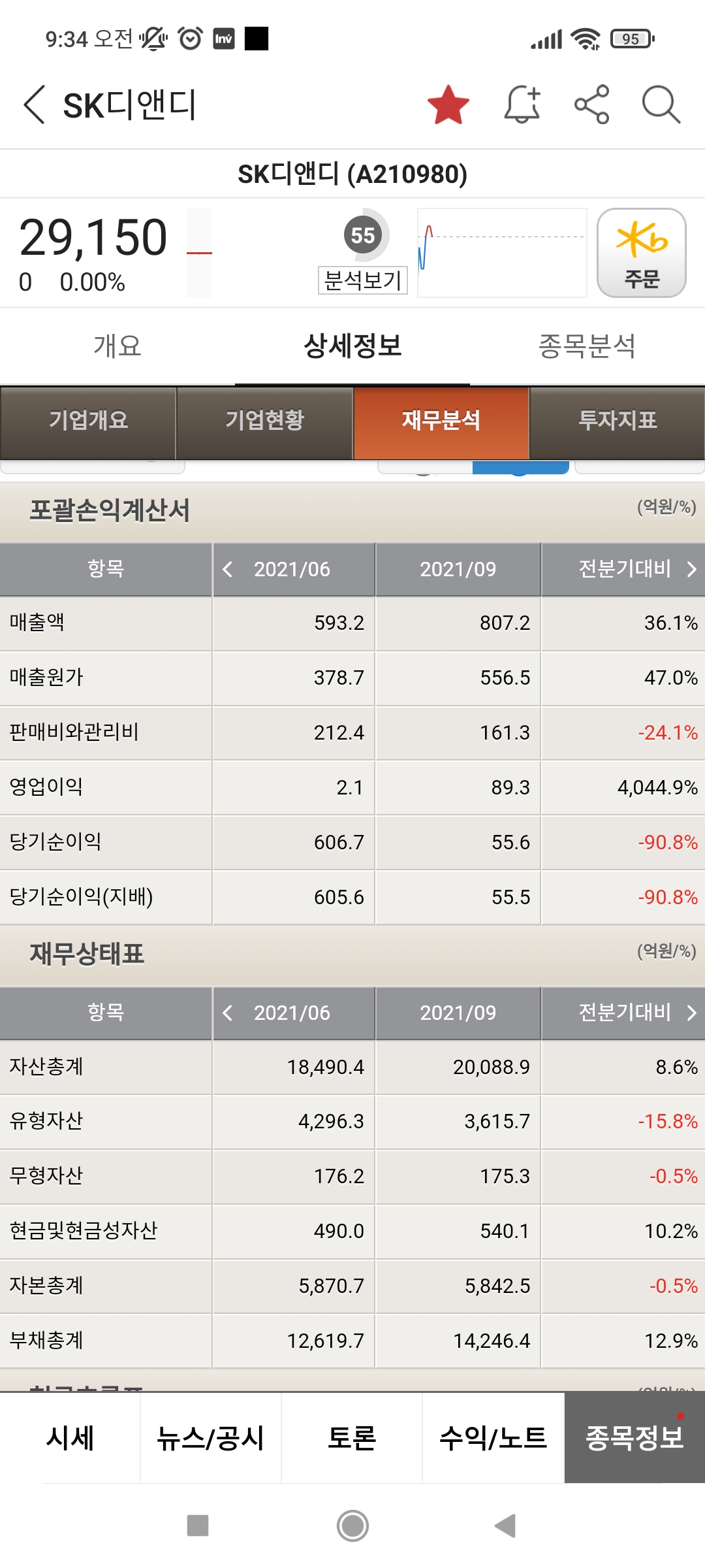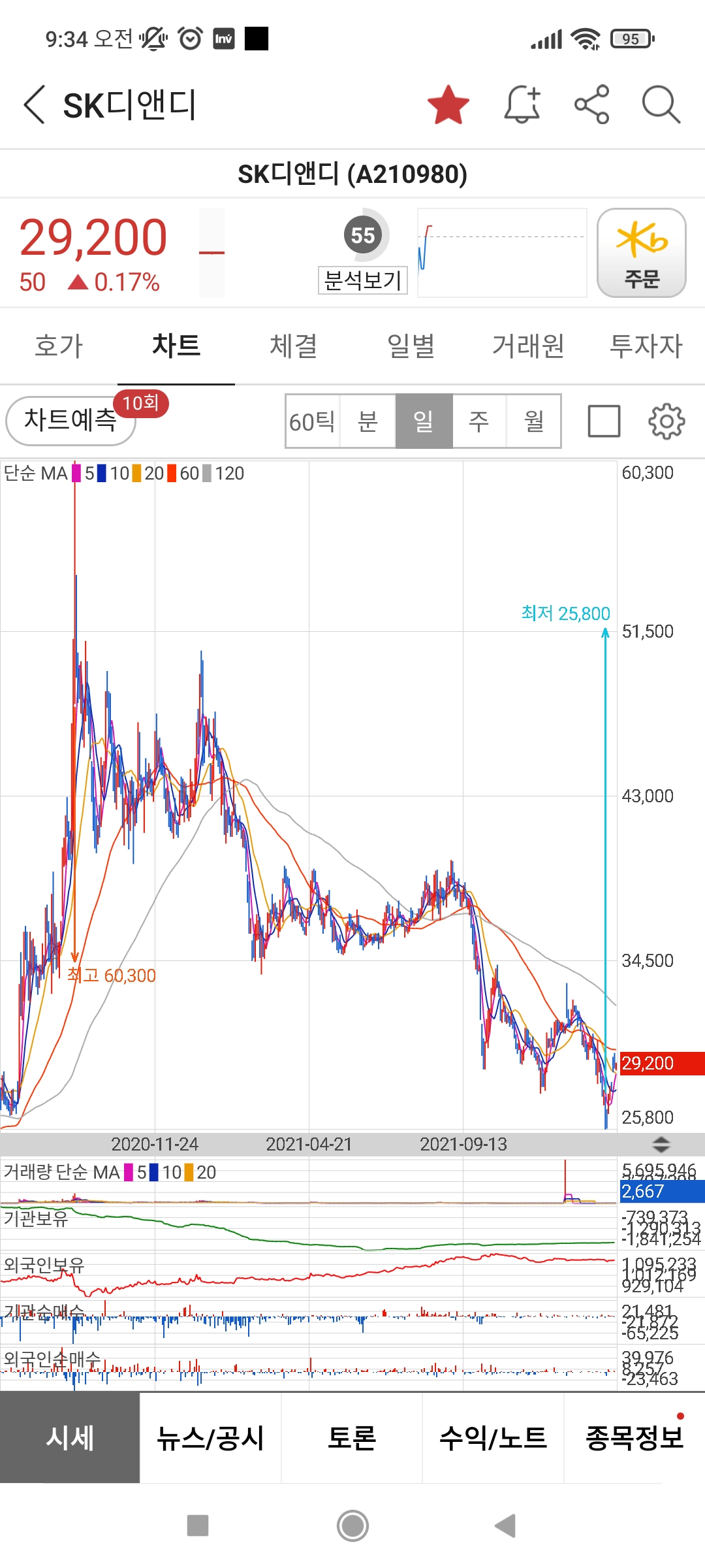 #sk디앤디는 시간만 끌리다가 거의 원래 가격으로 돌아오고 있네요