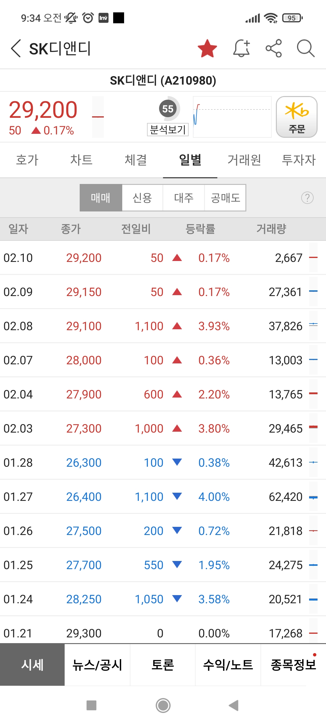 지금 sk디앤디는 거래량은 거의 없어서...문제입니다