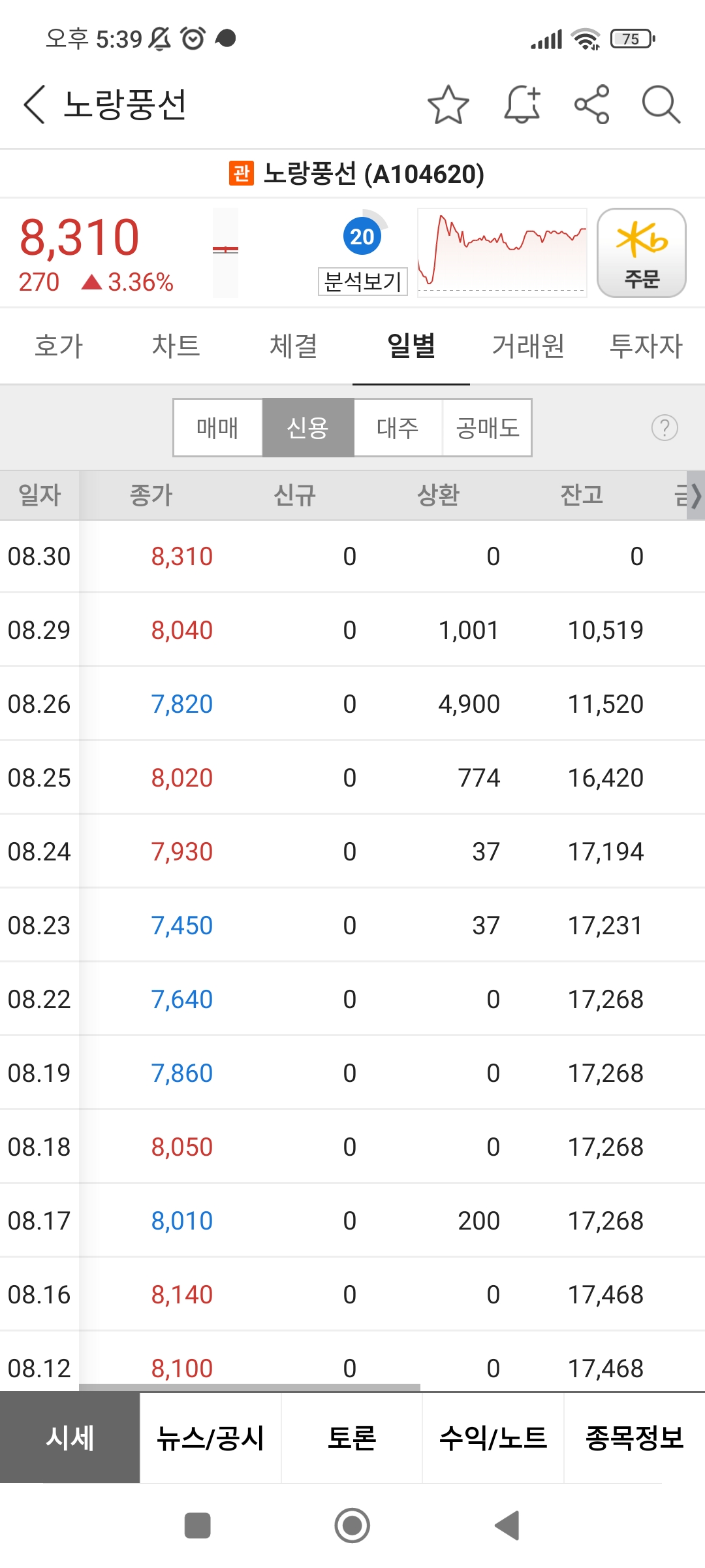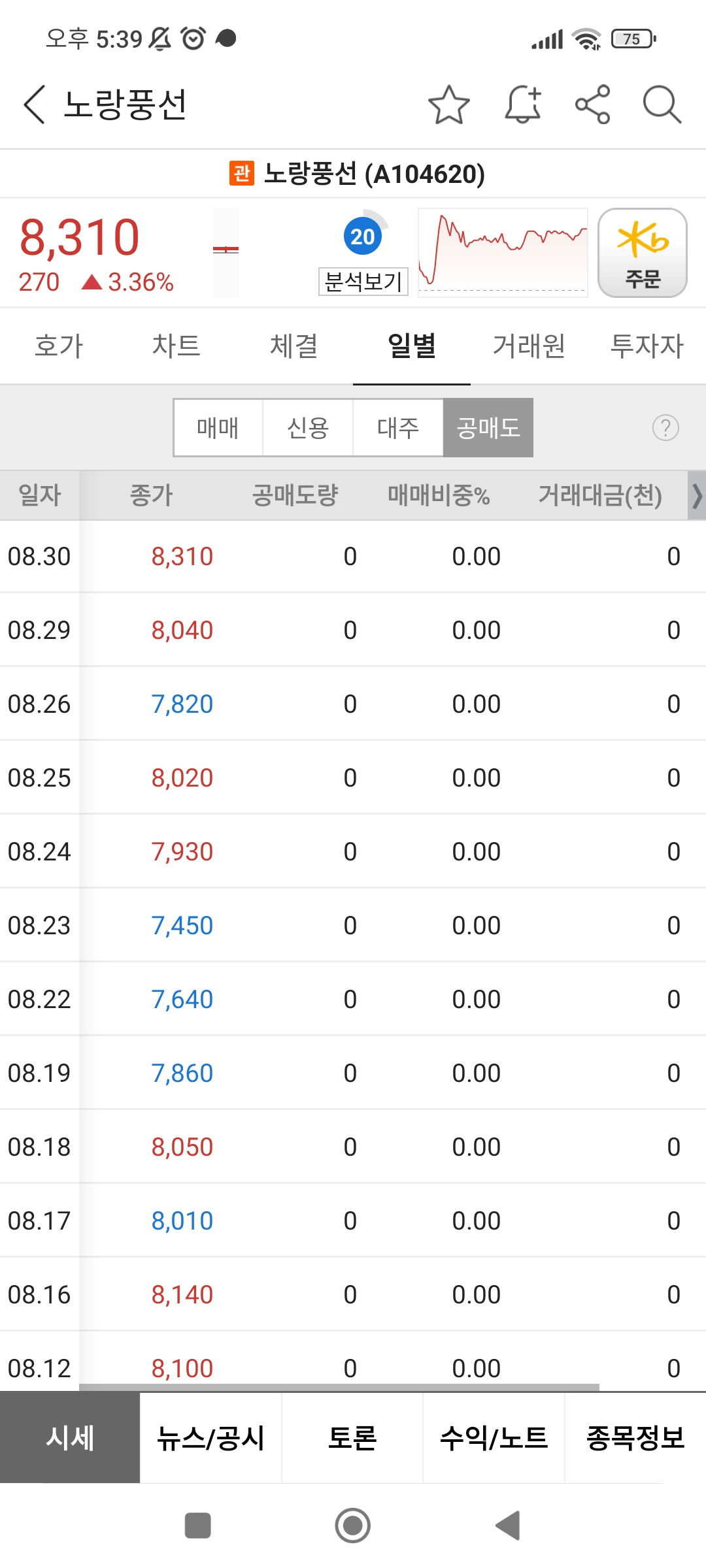 한동안 손절만 잔뜩나오다가