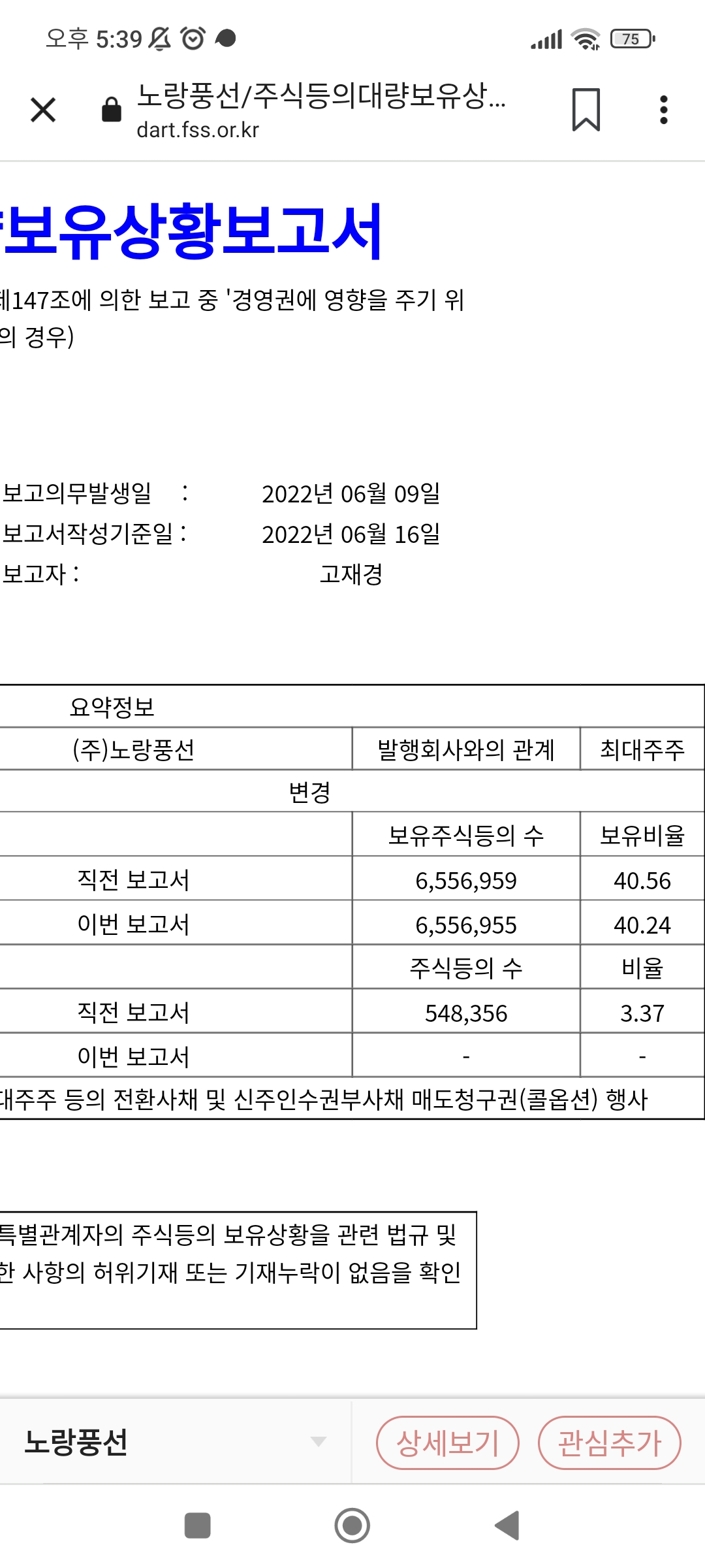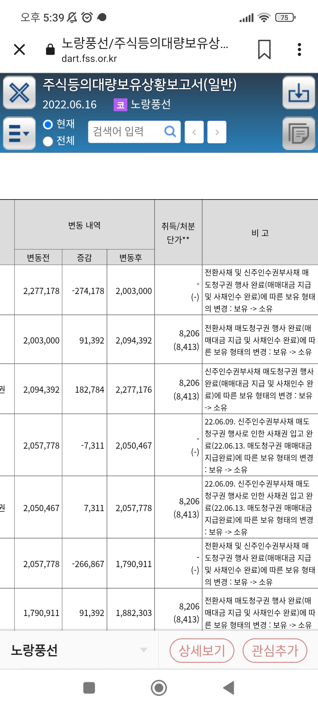 대주주도 슬금슬금 주식을 팔고있는데