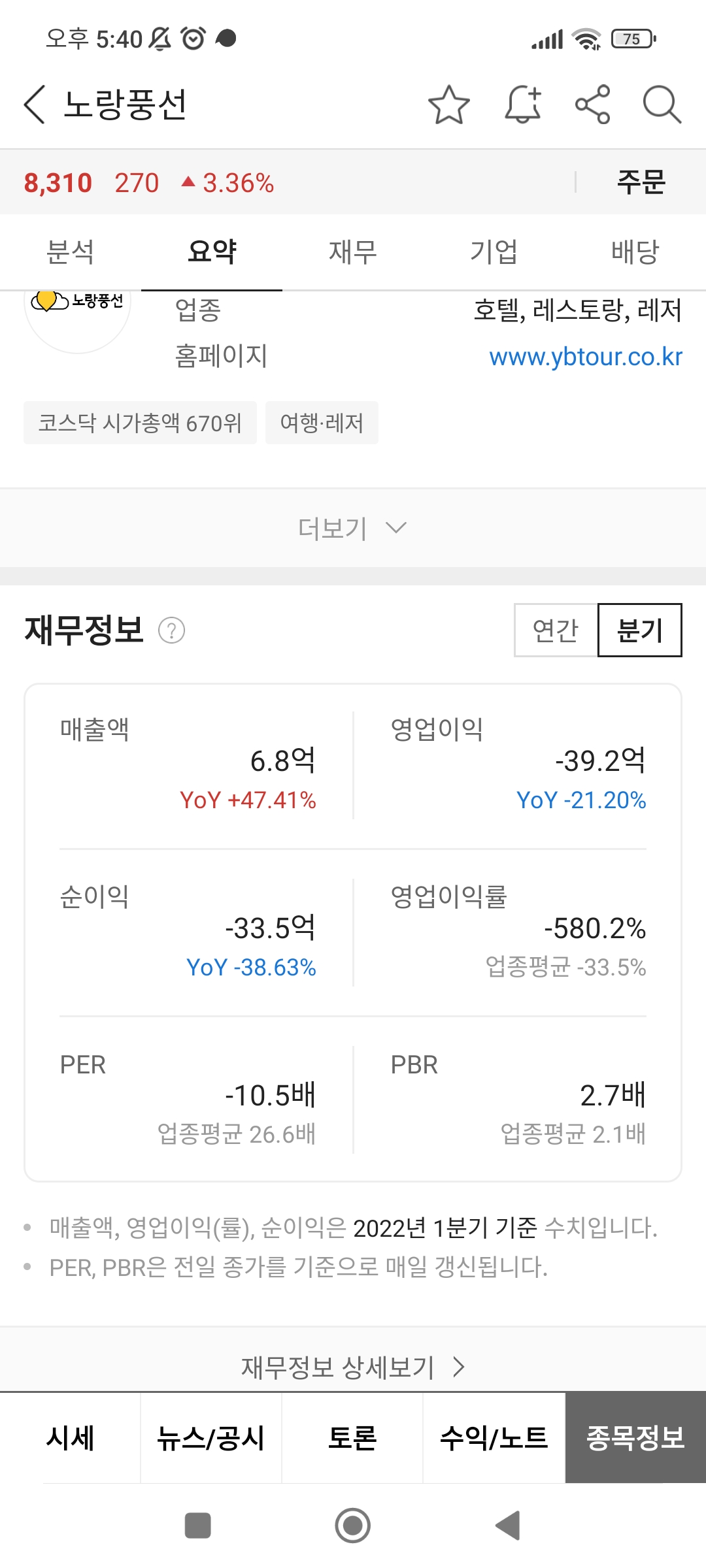 분기 매출은 어느정도 올라가는것보니