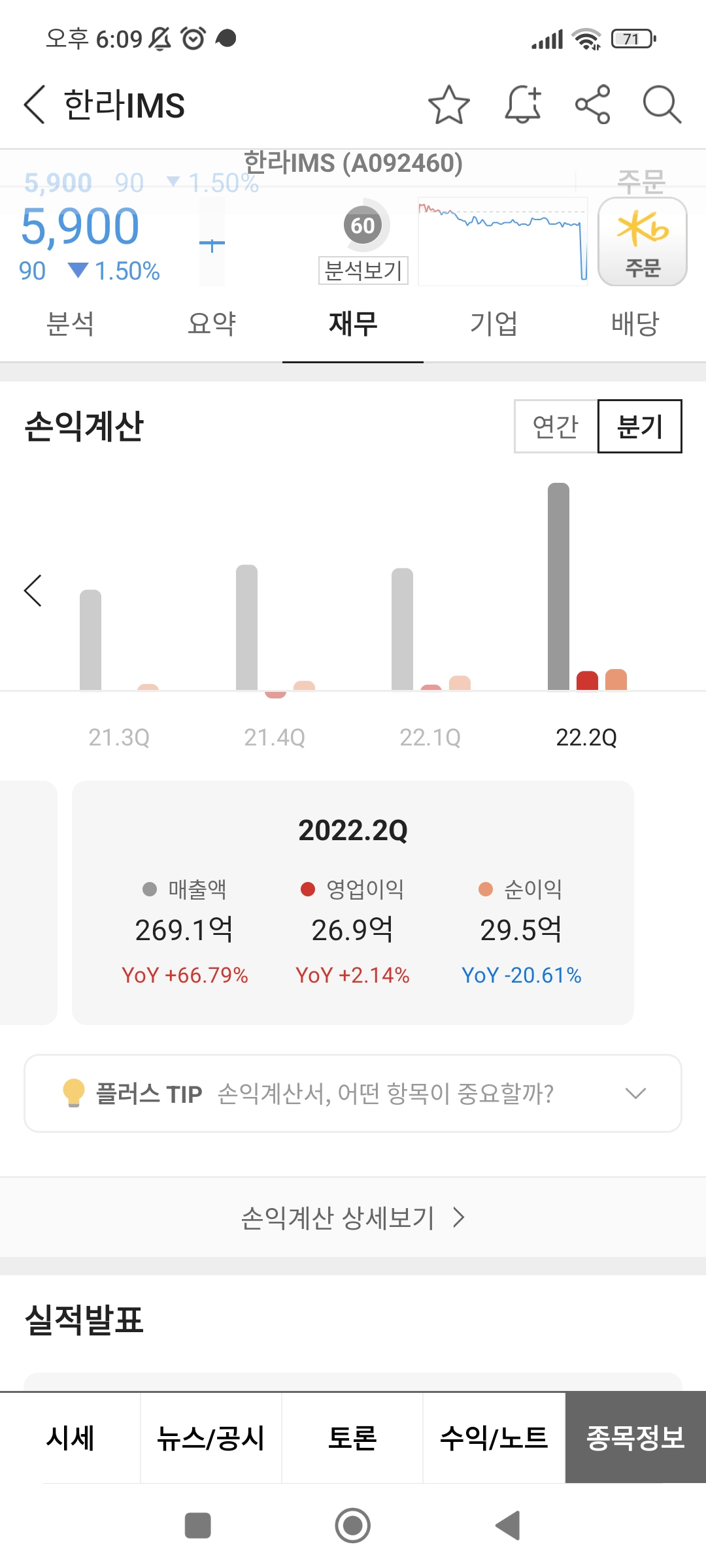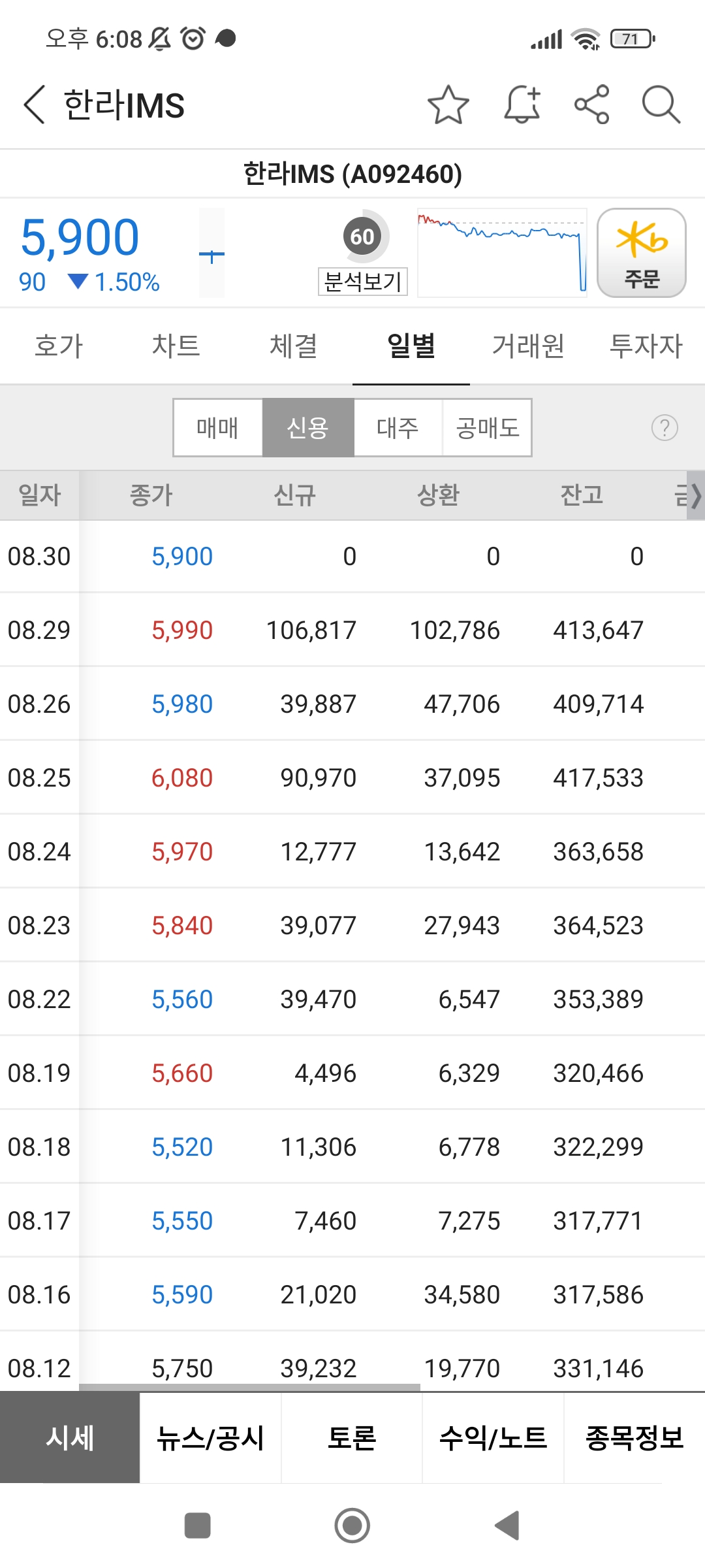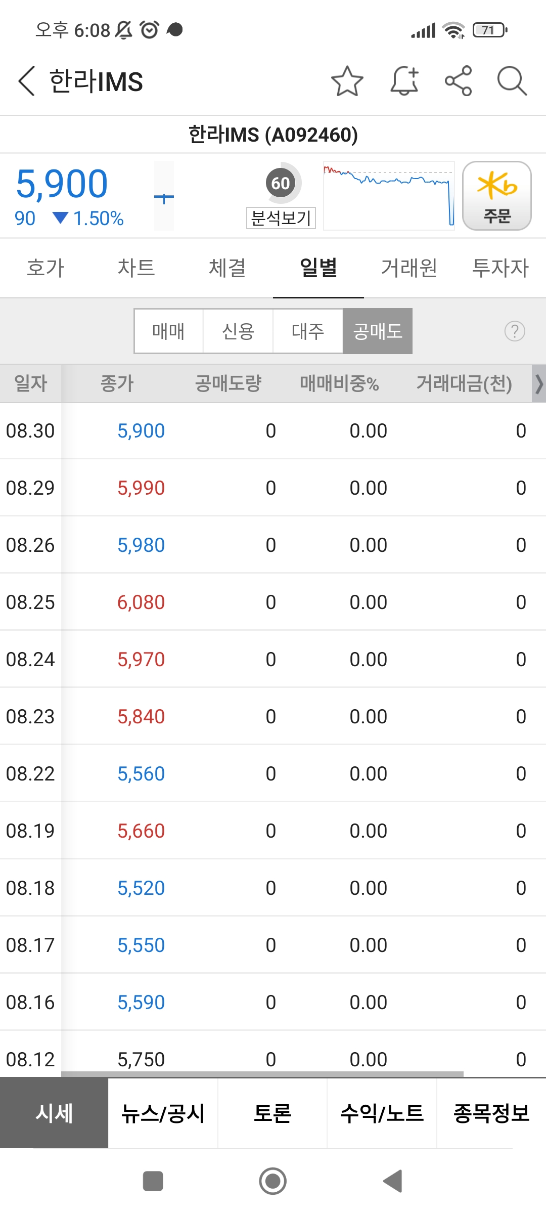 6100원이 단기 최대매물대라 이근처에서 반절은 매도하고